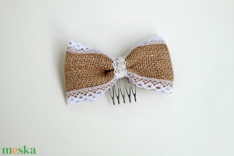 juta anyag, pamut csipke, fém hajfésű