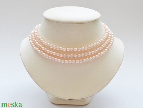 Kislánynak való méretű, 3 soros halvány rózsaszín üvegtekla kaláris - 6 mm-es üvegtekla gyöngyből