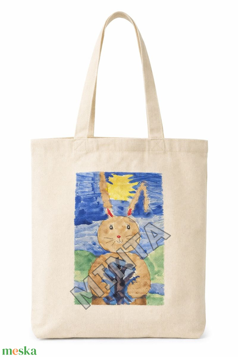 Egyedi hímzett gyermekrajzzal díszített vászontáska