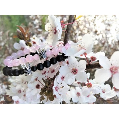 Luxury "Korona" karkötőpár rózsakvarccal
