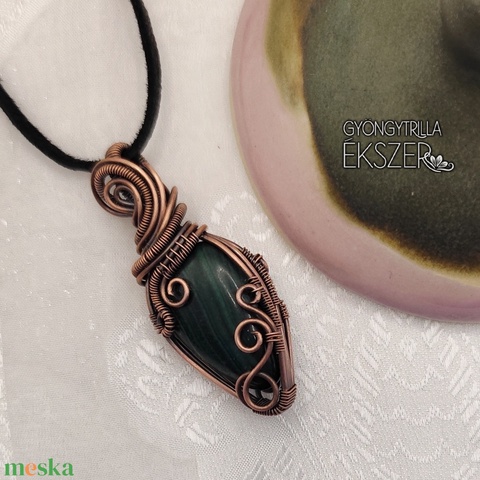 Malachit medál antikolt vörösréz befoglalással