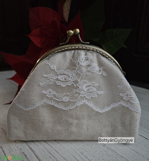 - Anyaga: fém tárca keret, közbélés, szőttes, csipke