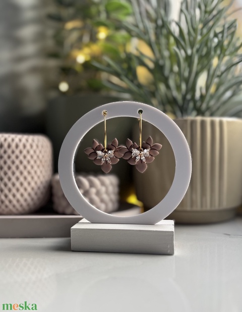 Eva- Világos Barna Karika Fülbevaló Czirkónia Masnival