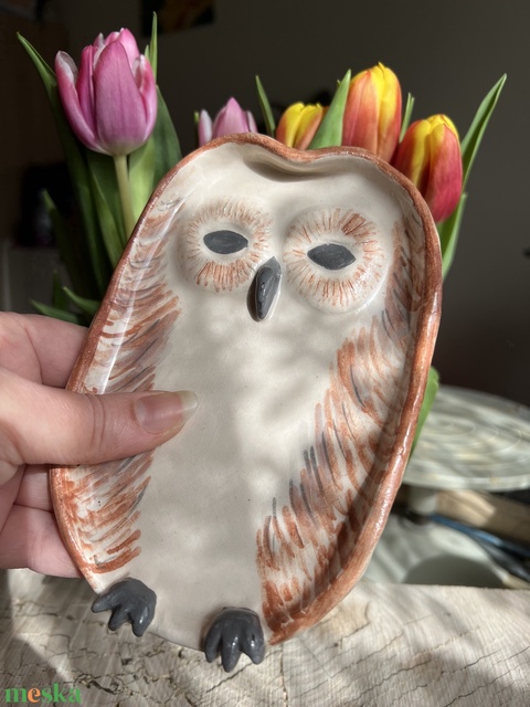 Kézzel készített kerámia baglyos tálka – Egyedi ajándék