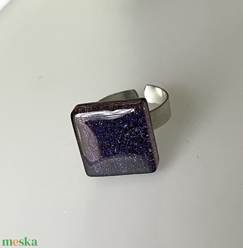 Kéken, lilásan irizáló gyűrű, üvegékszer