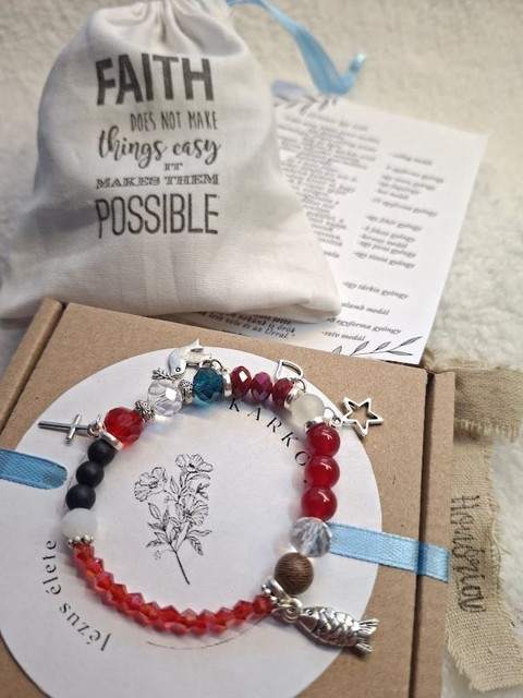 Jézus élete - keresztény történet karkötő-piros-105