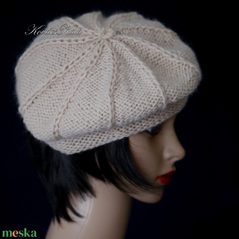 ALETTA / bézs - exkluzív kézzel kötött angora svájci sapka, barett KÉSZLETEN