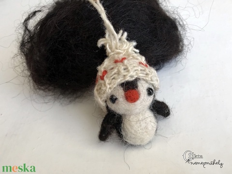 Tűnemezelt aranyos pingvin kötött sapkában