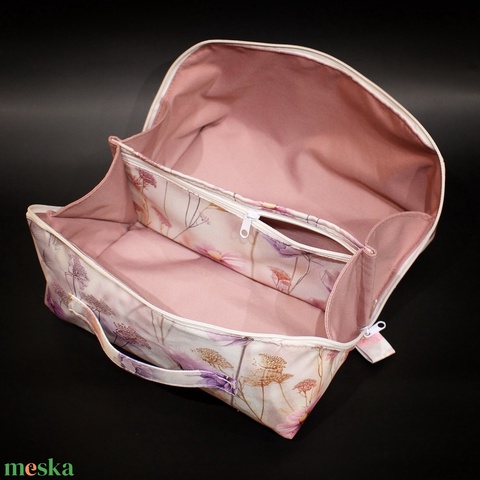 Binz neszesszer/nagy - pasztell lila virágos rózsaszín béléssel