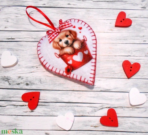 Goldi: valentin napi, kölyökkutyás szív dísz