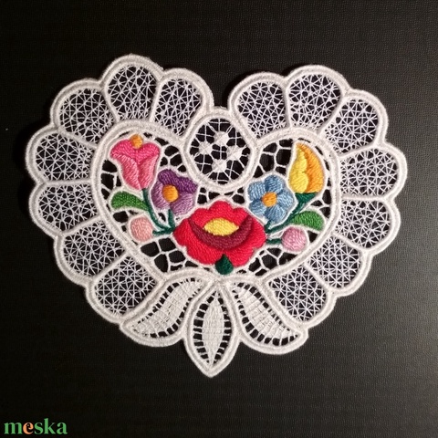 Riseliő csipke kalocsai virágokkal, szív alakú