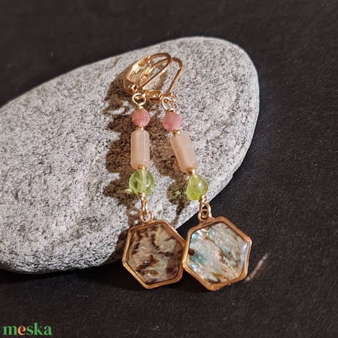 Turmalin - holdkő - peridot fülbevaló