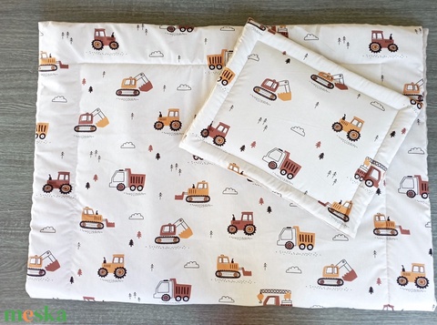 5 részes Egyedi ovis ágynemű - munkagépek mintás ovis takaró - párna - derékalj Oviszsàk szett