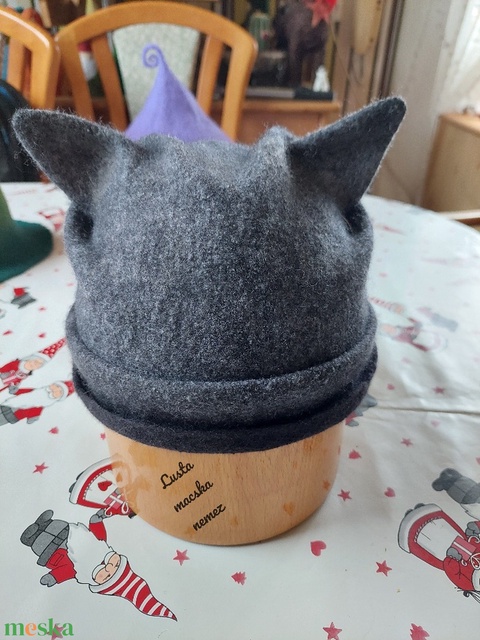 Nemez macskafüles sapka szürke cirmozással