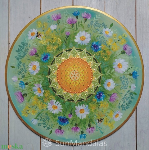 Margarétás-vadvirágos-méhecskés Mandala, Élet virága szimbólummal