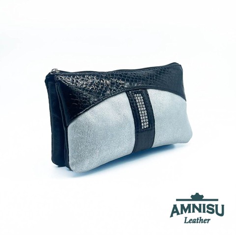 Fekete lakk kígyómintás - ezüst mintás egyenes kristály köves női pénztárca G8023