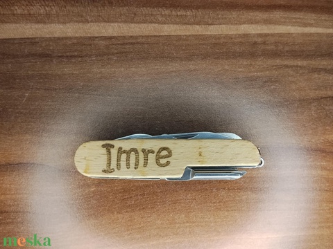 Ez a fa markolatú, több funkciós zsebkés tökéletes választás mindazok számára, akik szeretik az időtálló, praktikus és személyre szabott ajándékokat. A természetes fa nyél elegáns megjelenést kölcsönöz a késnek, míg a precíz lézergravírozás gondoskodik róla, hogy a név tartósan és stílusosan jelenjen meg a markolaton.