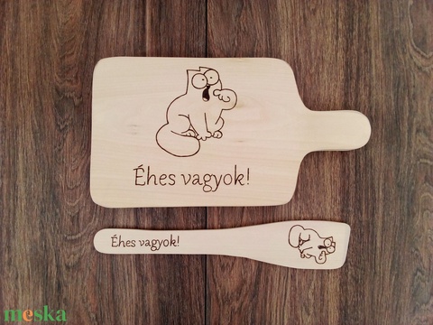 Vicces Simon's cat-es, macskás vágódeszka, fakanál, teflon lapát szett - 2 darabos