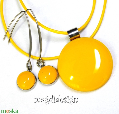 Napsárga minimál design üvegékszer szett, nyaklánc, lógós fülbevaló
