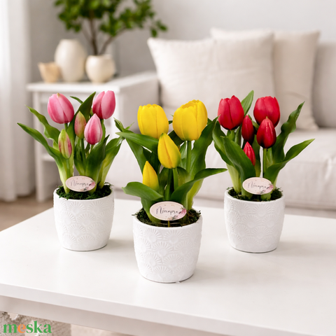 Élethű tulipán kerámia kaspóban