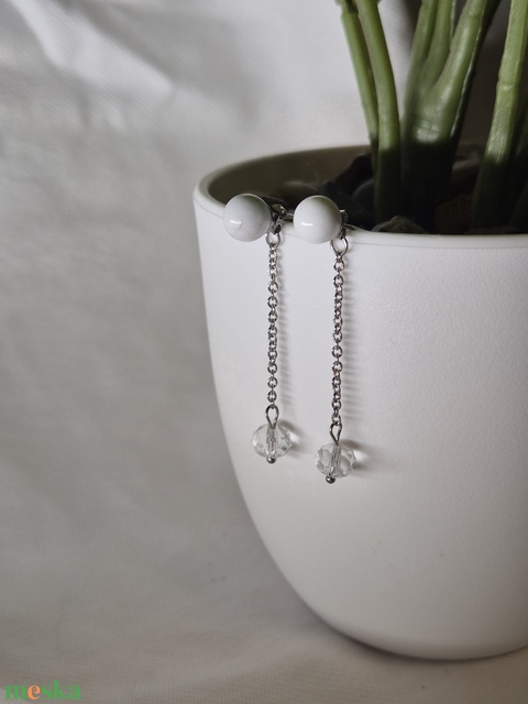 - Anyaga: nemesacél, üveggyöngy, howlit ásványgyöngy