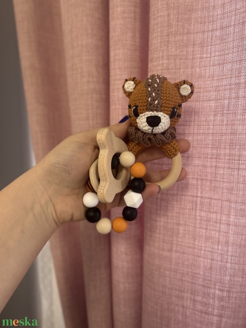 - Anyaga: 100% pamut fonal, kezeletlen natúr fakarika, szilikongyöngy