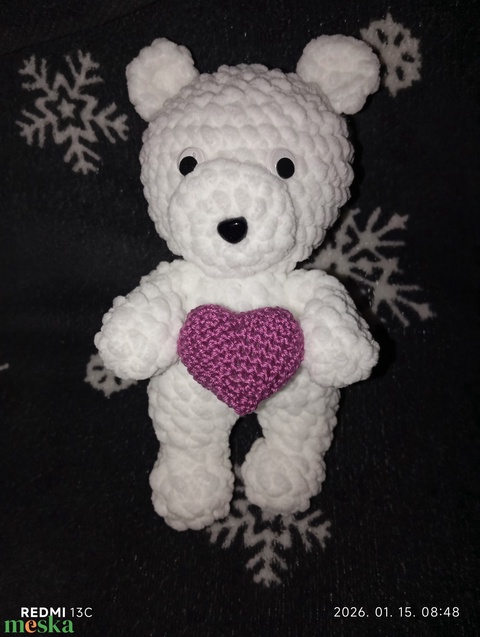Fehér plüss maci szívvel