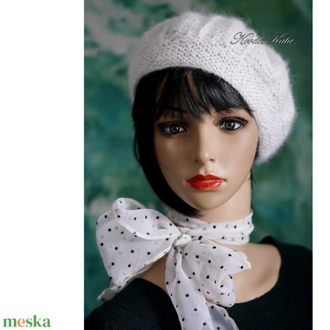 ALETTA / hófehér - exkluzív kézzel kötött angora svájci sapka, barett KÉSZLETEN