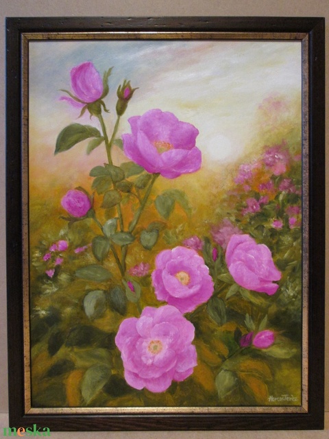Vadrózsák , Olajfestmény keretben