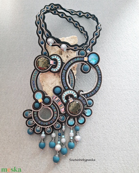 - Anyaga: sújtás zsinór, japán kása, cseh csiszolt gyöngy, ragasztó, cérna, nikkel mentes fémszerelék, strasszlánc, swarovszki