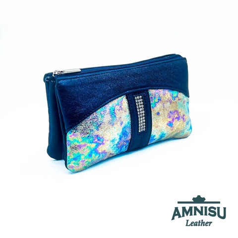 Metál sötétkék - hologramos egyenes kristály köves női pénztárca G6008
