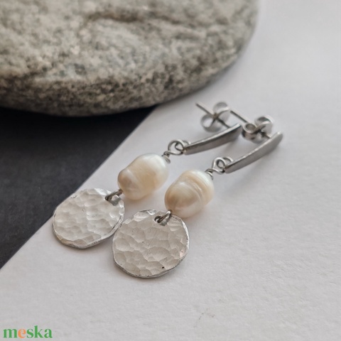 - Anyaga: nemesacél szerelék, alumínium korong, édesvízi tenyésztett gyöngy