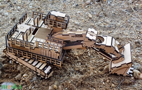 Prémium fa makett – lánctalpas kotrógép Hitachi stílus