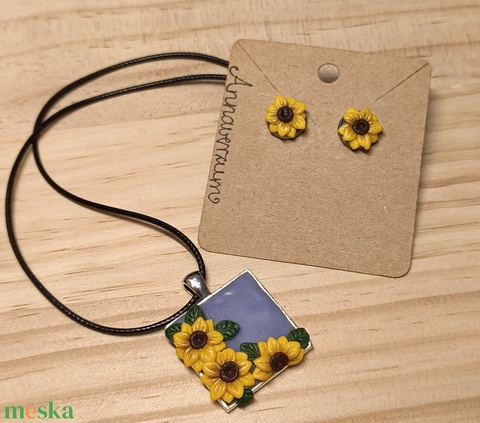Napraforgó nyaklánc/medál és fülbevaló szettben