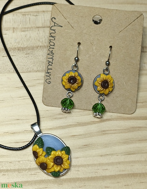 Napraforgó nyaklánc/medál és fülbevaló szettben