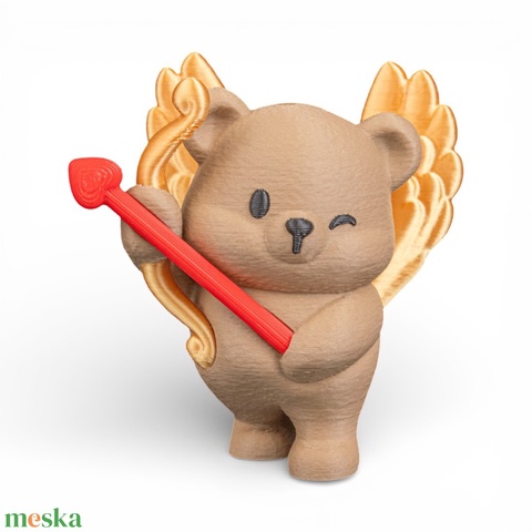 A szerelem néha váratlanul érkezik, akárcsak Ámor nyila. Ez a bájos, kacsintós kismackó magára öltötte a szerelemisten szerepét: hátán fénylő arany szárnyakkal, kezében egy szívvégű nyíllal készül meghódítani a választottadat. Nem egy komoly, drámai vallomás, hanem egy mosolyt csaló, kedves gesztus, ami a legszürkébb reggeleken is emlékezteti párodat arra, hogy valaki rajong érte. Tökéletes választás azoknak, akik hisznek abban, hogy a romantika lehet könnyed és játékos is.