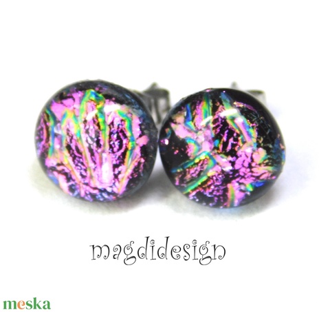 NEMESACÉL! Pinkes tűzijáték dichroic üvegékszer fülbevaló 1