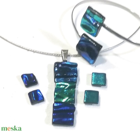 NEMESACÉL! Kék-zöld kockák trendi ékszerszett, díszdobozba csomagolva.
