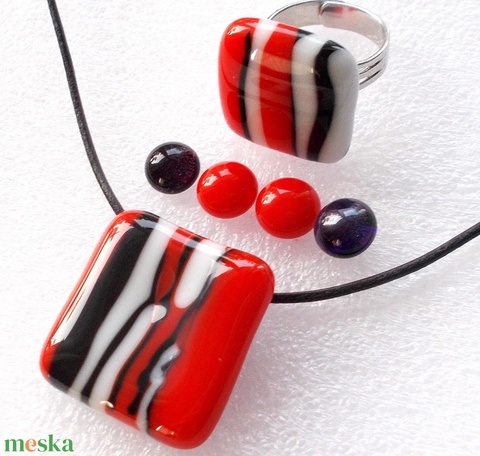 AKCIÓ! Piros-fekete-fehér ékszerszett , ajándék lányoknak.