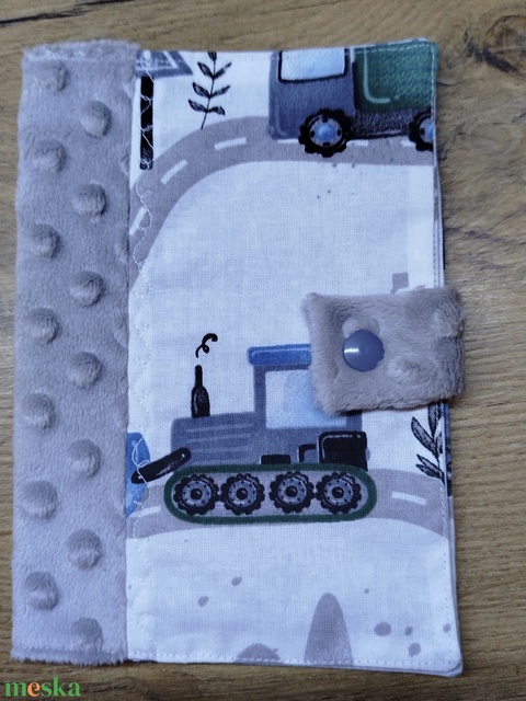 textil gyermek egészségügyi kiskönyv borító,munkagép mintával