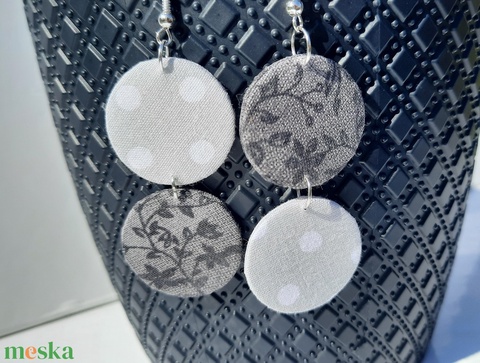 Fekete-szürke duplakör textil fülbevaló