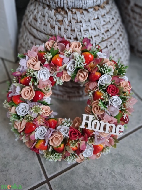 - Anyag/Összetevő selyemvirág, szalag, ragasztó, gumivirágok, szalmaalap, tábla, mű gyümölcs