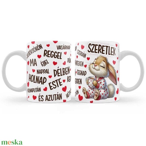 Valentin Napi Bögre 3dl - Szeretlek – Nyuszis Valentin Napi Ajándék - Szerelmes Ajándék