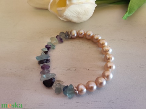 Édesvízi tenyésztett gyöngy - fluorit ásvány karkötő.