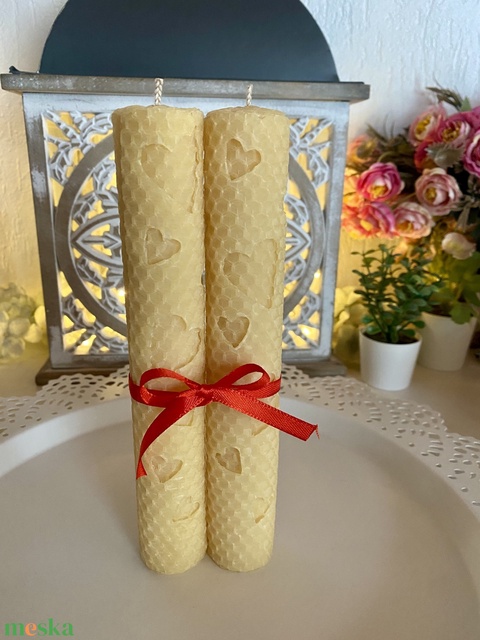 Méhviasz gyertya-Szivecskés páros gyertya