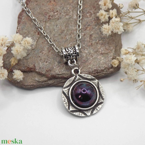 ezüst színű függő, ezüst színű nyaklánc, cseh üveg kaboson