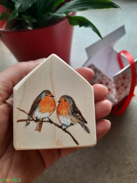 Házikó egyedi festéssel - Vörösbegy; Valentin-napra, Nőnapra vagy más alkalomra