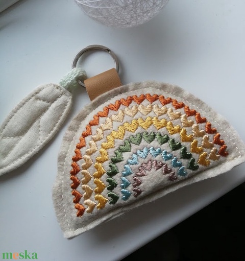 Hímzett szíves szivárvány – kézműves textil dekoráció
