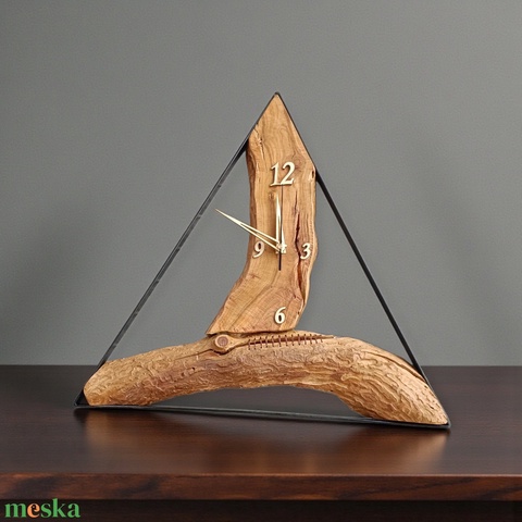 Mandulafa falióra háromszög alakú laposvas keretben – ipari és természetes összhang (43 cm)