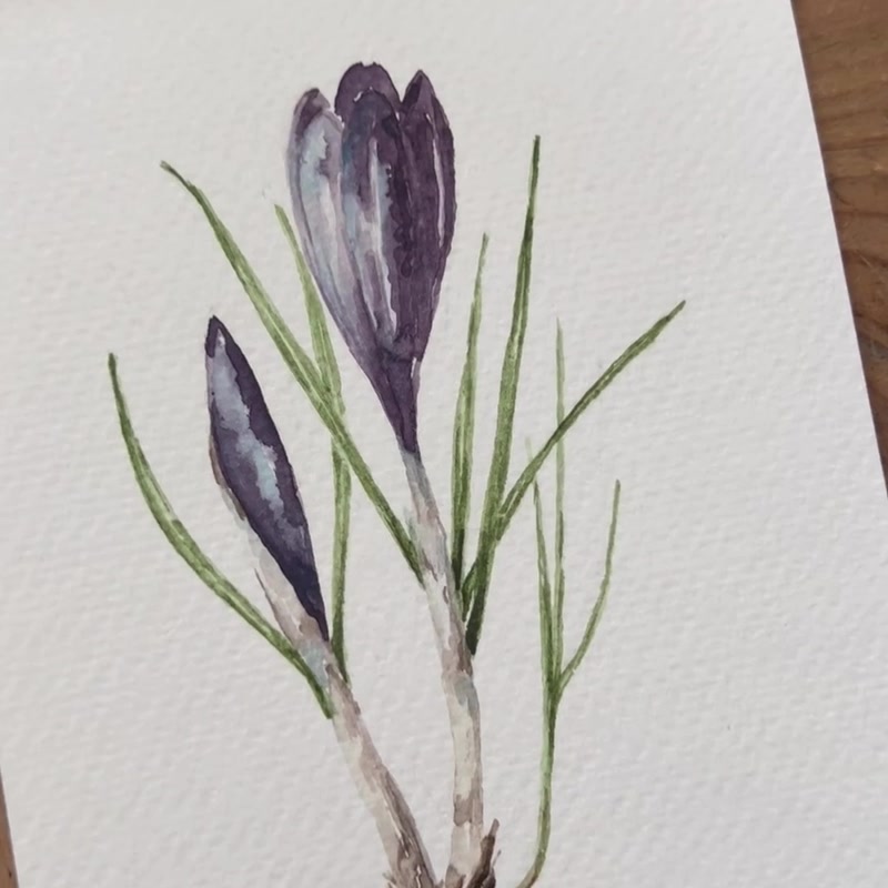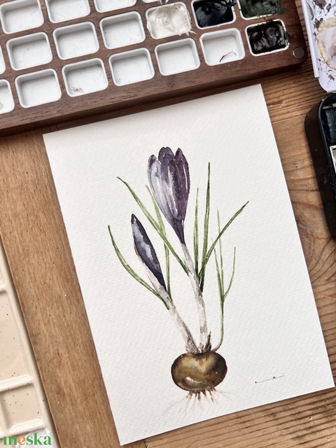 Eredeti akvarell lila krókusz virág festmény